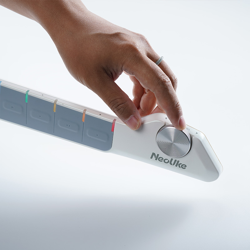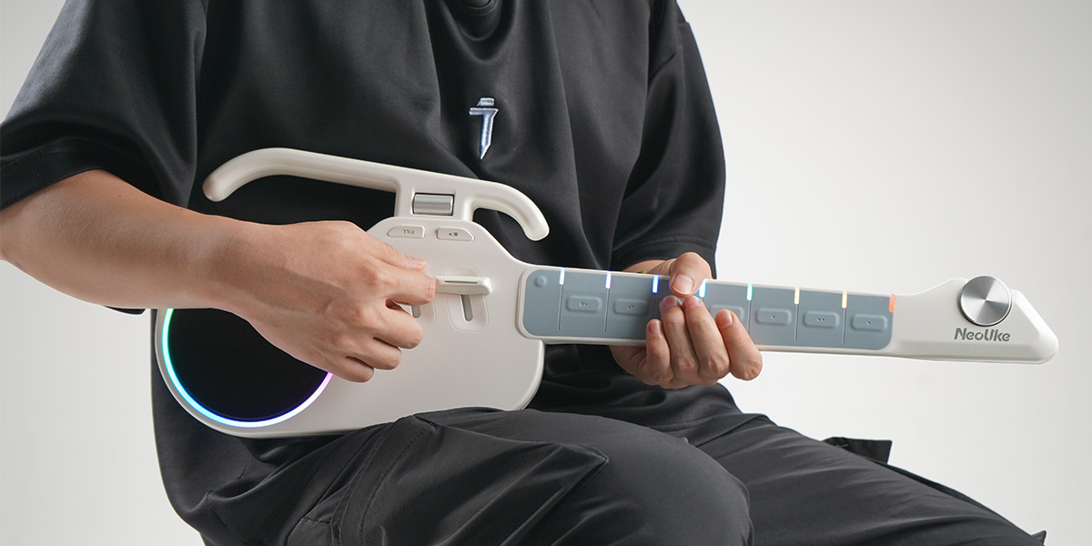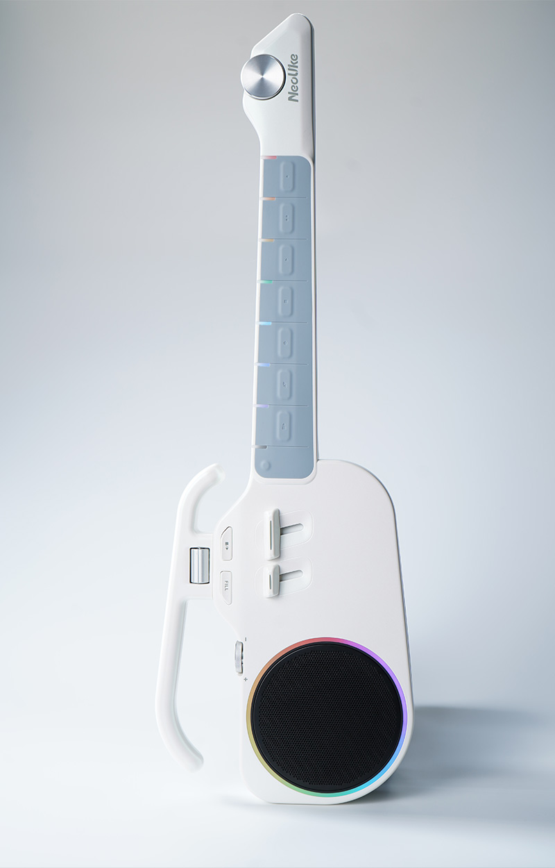 NeoUke 是一款便携、简易、无琴弦的吉他,内置扬声器。它具备常见的吉他节奏型,并可轻松触发,让用户能够完成通常需要多年练习才能掌握的吉他伴奏演奏。