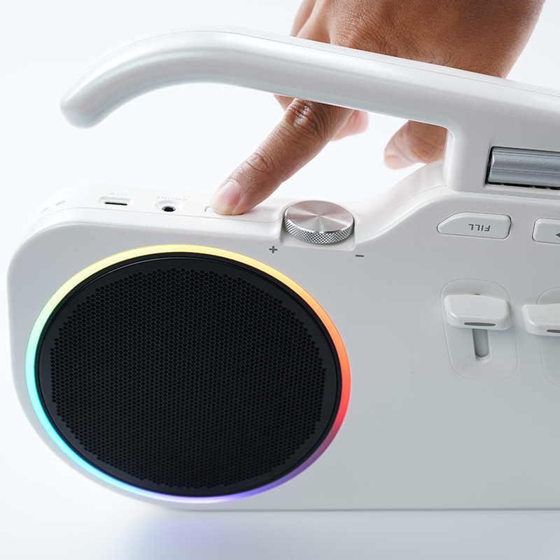 喇叭周围 RGB 动态灯环。多种灯效:呼吸、音量计、旋转、节奏闪烁。夜间演奏与视频拍摄效果极强。