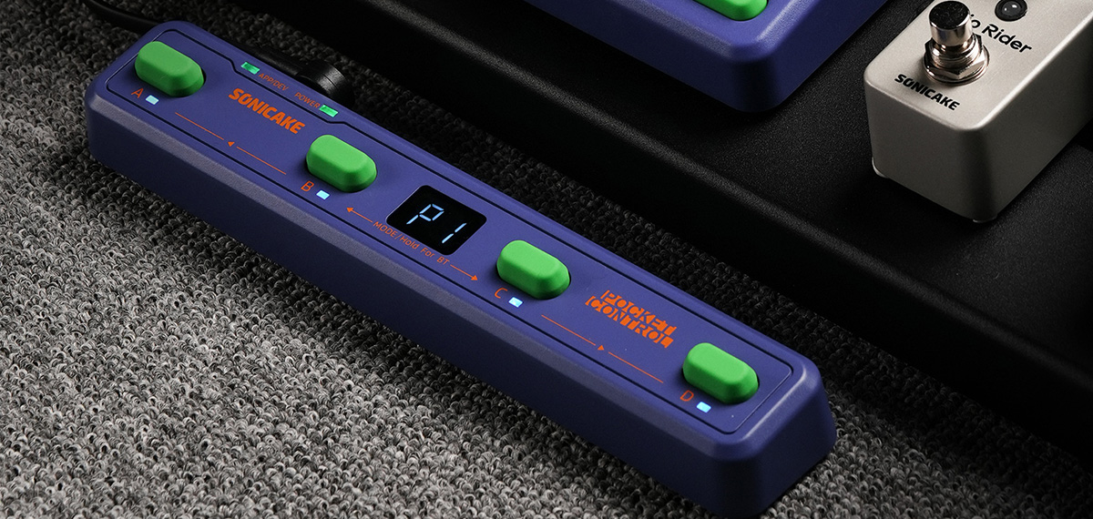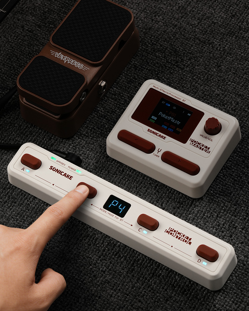 这是Sonicake最新的无线MIDI控制器。本品带有4个全功能编程踩钉,支持通过有线和无线的方式发送MIDI信息,内置锂电池,使你的MIDI控制更加灵活多变。你可以最多分配16个不同的MIDI信息到一个踩钉上,并且可以通过设置不同的触发动作进行发送,使用场景更加广泛。本品支持USB HOST功能,可方便的做为主机控制其它设备。另外,你可以使用配套的移动端APP详细设置你的设备,操作简单直接,从此编程再无烦恼。